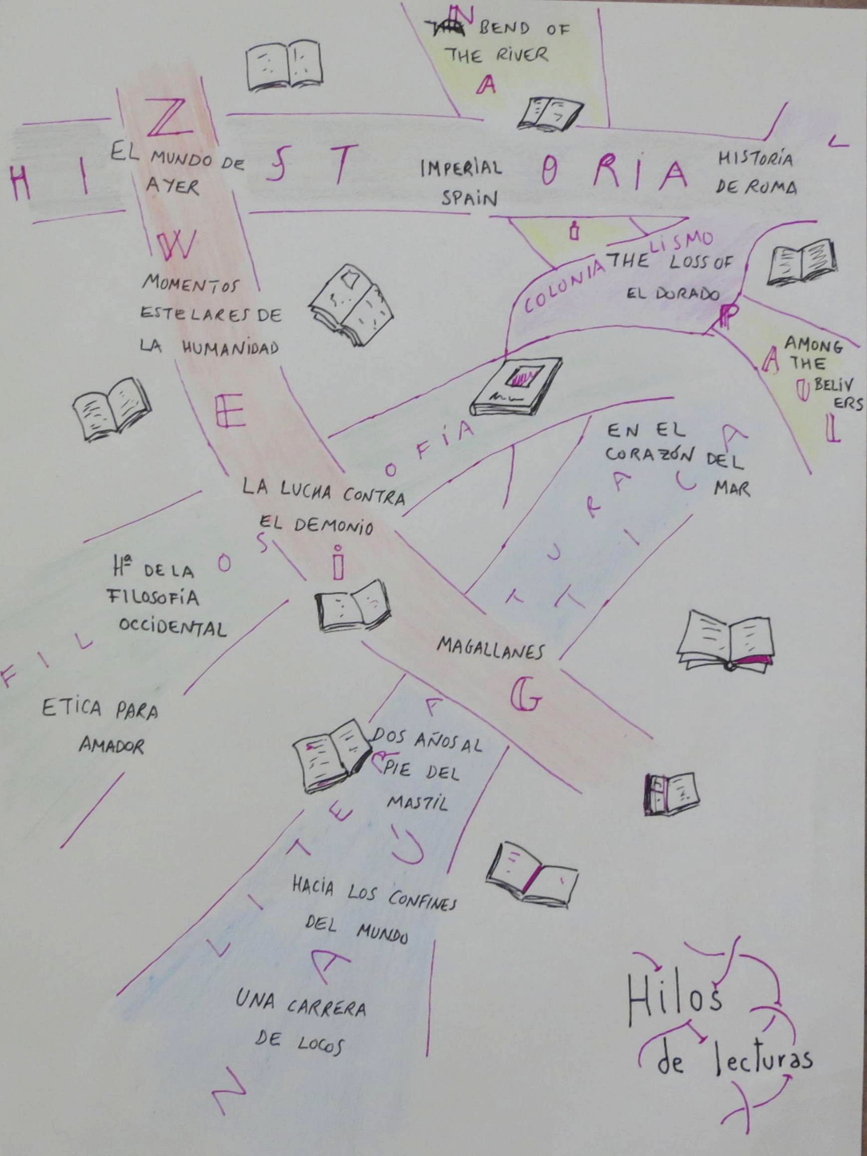 Tomemos por caso a Zweig. Empezamos con su magnífico libro El mundo de ayer. Es un libro de historia del siglo XX, contado de forma amena, dando el punto de vista de un vienés que crece en el rigor prusiano y es capaz de saborear los distintos logros de la cultura europea. Zweig nos muestra el máximo esplendor de Europa. Y después su derrumbamiento. Nos engancha su manera de contar las cosas. Quiero otro Zweig. Lo necesito. Ya tengo el primero hilo del que tirar. Entonces leo Momentos estelares de la humanidad. Y puede que me dé por seguir leyendo historia. Empieza a formarse el segundo hilo. Ese es un hilo que puede bifurcarse en varios. Hay lecturas sobre la historia de España, que a su vez se fragmentan. Imperial Spain retrata la creación del Imperio Español de una forma magistral. Me gusta especialmente el colonialismo. Y en ese campo destaca Naipaul. Otro hilo. Naipaul que es de origen indio pero nace en Trinidad, en las indias occidentales. Y su obra tiene siempre de telón de fondo, cuando no en primer plano, las consecuencias de la colonización.